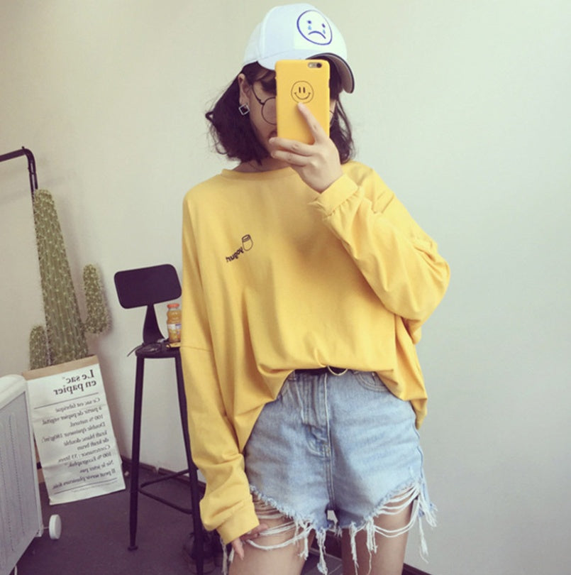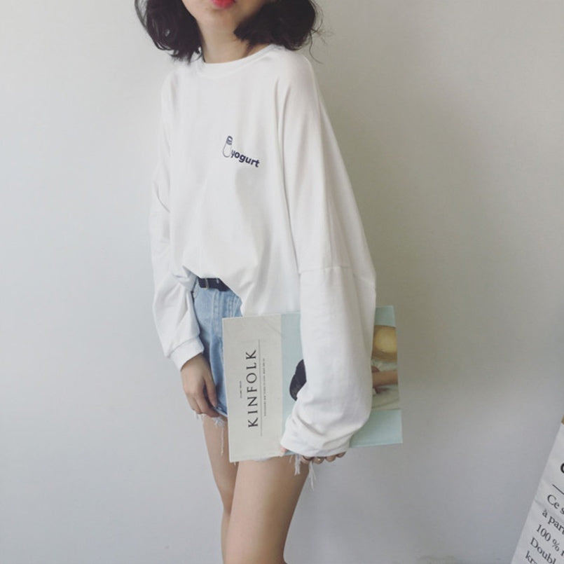 new women's long-sleeved t-shirt female students Korean version of the spring and autumn loose large size letters clothes shirt foreign trade